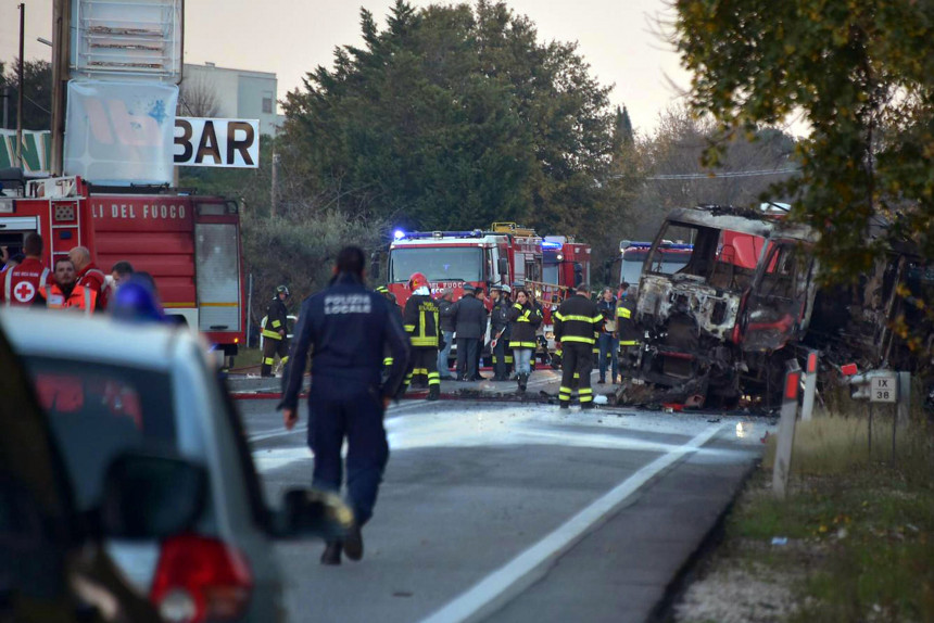 Sprādziena spēks aizmeta autocisternu un ugunsdzēsēju mašīnu vairāku metrus, ziņoja laikraksts "La Repubblica".