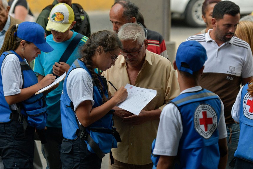 Otrdien Karakasā Sarkanā Krusta darbinieki izdalīja tīru dzeramo ūdeni un ūdens attīrīšanas tabletes.