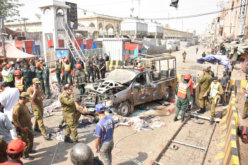 "Policija bija galvenais mērķis šajā uzbrukumā. Mēs vācam tiesu medicīnas pierādījumus, lai noteiktu sprādziena raksturu. Šajā uzbrukumā gājuši bojā deviņi cilvēki un 24 ievainoti," paziņojusi Lahoras policija.