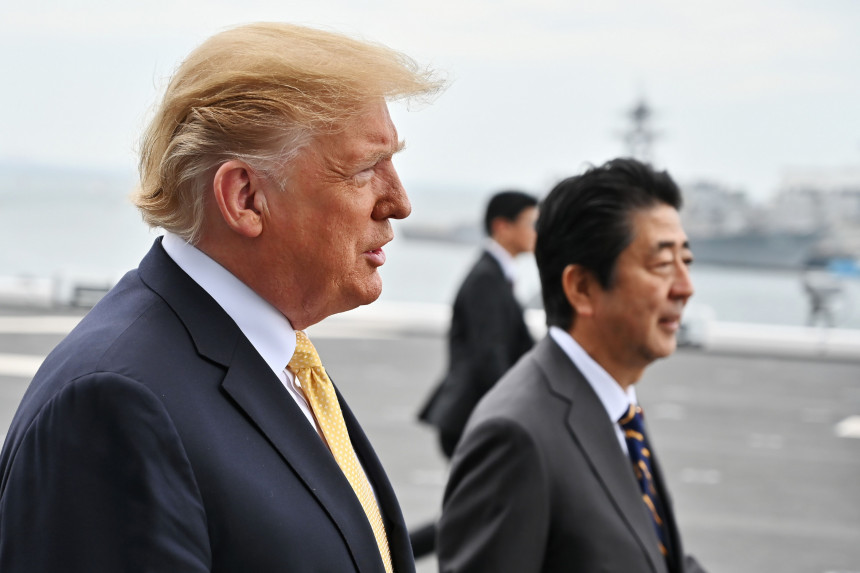 Japānas premjerministrs Sindzo Abe, kurš kopā ar Trampu apmeklēja "Kaga", kopš stāšanās amatā 2012.gada decembrī ir palielinājis valsts aizsardzības izdevumus un, atvieglojot pacifistiskās konstitūcijas noteiktos ierobežojumus armijas darbībai ārvalstīs.