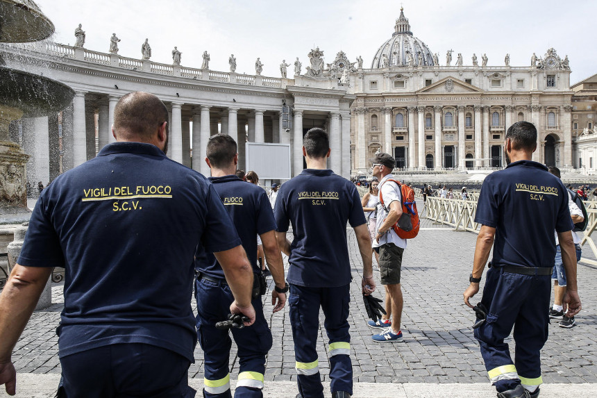 "Aplaudēsim ugunsdzēsējiem," mudināja pāvests, un Svētā Pētera laukumu pāršalca aplausi.