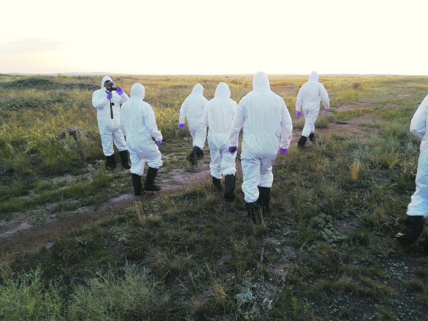 Pēc Kurčatovas apmeklējuma nāk pats galvenais - došanās iekšā pašā kādreizējās elles centrā. Profesionālu «stalkeru» - zinātnieku un gidu - pavadībā kopā ar Japānas, Izraēlas, Meksikas, ASV un Itālijas žurnālistu grupu devos ceļā uz vietu, kur PSRS uzspridzināja savu pirmo atombumbu. Zinot, ka Hirosimā un Nagasaki cilvēki pašlaik dzīvo un bēdu nepazīst, esmu mierīgs, domājot, ka pēc tik daudziem gadiem kopš izmēģinājumiem diezin vai saņemšu veselībai bīstamu radiācijas devu. «Stalkeri» skaidro, ka pašā epicentrā gamma staru intensitāte joprojām ir paprāva un tur nedrīkst uzturēties ilgāk par 40 stundām. Taču nepilnas stundas laikā radiācijas deva nebūšot lielāka, kā vienreiz apmeklējot fluorogrāfu. Braukšana uz objektu gan izvēršas ilga un mokoša. Tieši pie iebrauktuves poligonā lokomotīve dzenā turp un atpakaļ vagonus ar oglēm un kaitinoši apstājas tieši uz pārbrauktuves. Mūsu autobusiņam nekas neatliek, kā stāvēt un gaidīt. Neviļus ienāk prātā ģeniālā kirgīzu rakstnieka Čingiza Aitmatova refrēns no romāna Un garāka par mūžu diena ilgst: «Vilcieni šajā pusē gāja no austrumiem uz rietumiem un no rietumiem uz austrumiem… Gar dzelzceļa malām šajā pusē pletās milzīgi tuksnešaini plašumi - Sariozeki, dzelteno stepju vidienes zemes…» Lūk, tagad šo episko ainavu redzu pats savām acīm! Kad beidzot tiekam iekšā poligonā, seko vēl vairāk nekā stundu gara, mokoša kratīšanās pa izdangātu stepes ceļu, līdz beidzot ir redzams tas, ko agrāk nevienai nepiederošai acij nebija ļauts skatīt, - dažādu izmēru betona bunkuri un sienas, kas pārdzīvojušas sprādzienu triecienviļņus. Mūs ietērpj baltos aizsargkostīmos, speciālos zābakos, cimdos, un uz mutes jāliek respiratori. Tas piesardzības pēc un lai ar savām drēbēm neizvestu līdzi kādus putekļus. Jo tuvāk epicentram, jo bailīgāk, un Geigera skaitītājs sāk aizvien nepatīkamāk pīkstēt. Satraukts ir gan japānis Hiroši, gan ēģiptiešu izcelsmes amerikāņu žurnālists Ahmeds, kam ir nācies piedzīvot politiskas vajāšanas un bēgšanas. Epicentrs ir apaļa, pārdesmit metru diametra plata nedziļa bedre ar pusmetru augstu zemes valnīti apkārt. Blakus ir vēl viena dziļāka bedre, ko nezinātājs varētu noturēt par aizaugušu vecupi. Tur savulaik zemzemē tika uzspridzināta bumba ar pārpasaulīgi briesmīgu jaudu. Zemē var atrast «haritončiku» jeb zinātnieka Vladimira Haritonova vārdā dēvētus gabaliņus par stiklu sakusušu smilšu, ko nedrīkst ņemt līdzi, jo no šiem priekšmetiem nāk neliels radiostarojums. Mūs brīdina, ka, ja grābstīsimies pa zemi bez cimdiem, pēc tam jebkurā lidostā var iznākt nepatikšanas, jo aparāti uzrādīs radioaktivitāti. Kazahu zinātnieki pašlaik pēta, kādas ir iespējas sagandēto vidi renovēt - zem stepes vanagu aplidotajiem plašumiem ir milzīgas dabas bagātības - ogles un citi izrakteņi, zemi varētu vēl visādi izmantot, taču tad jānoskaidro, kā to veikt bijušajā poligonā, kura izmērs ir apmēram tikpat liels kā Izraēlas valsts. «Stalkeri» paskatās pulkstenī un paziņo, ka nupat pietiks filmēt un fotografēt, un jālasās projām. Atpakaļceļš jau ir tumsā, pa ceļam redz bēgošu stepes dzīvnieciņu ēnas, un atkal jāgaida, kad beidzot ogļu vagoni beigs manevrēt.