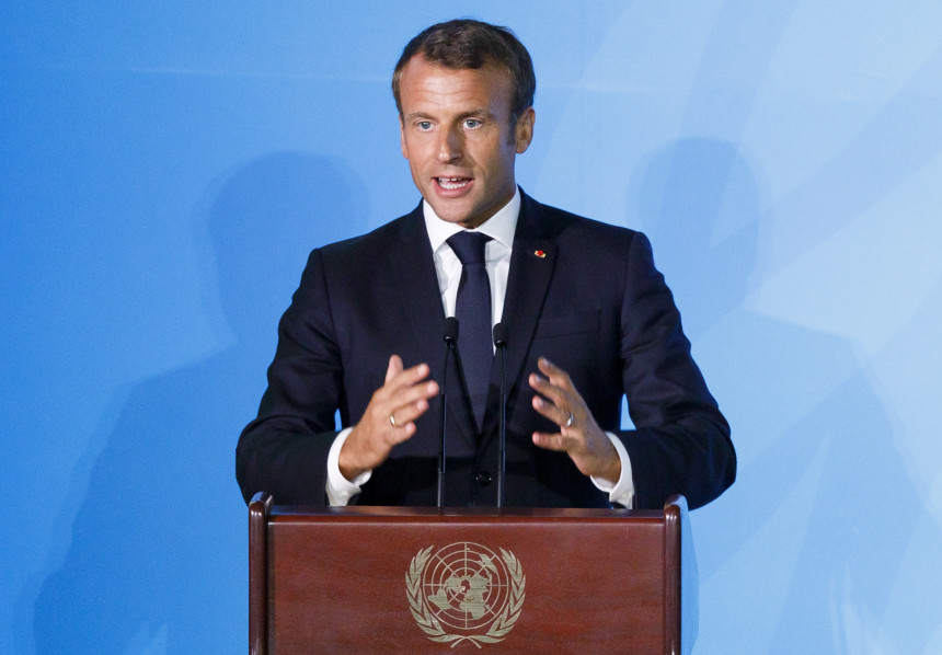 Ceļā uz Ņujorku Makrons svētdien izteicās, ka Polija nobloķējusi viņa centienus panākt, lai Eiropas Savienība (ES) apņemas sasniegt neitralitāti oglekļa dioksīda emisijas jomā līdz 2050.gadam.