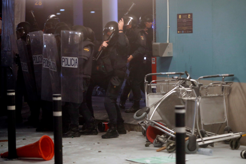 Liela protestētāju pūļa un policijas starpā sadursmes izraisījušās Barselonas starptautiskajā lidostā.