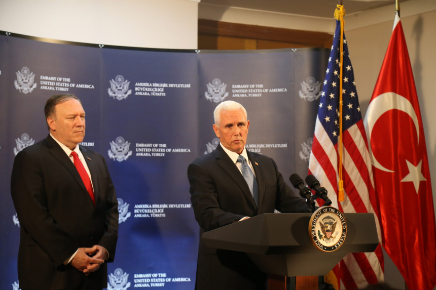 Turcija un ASV vienojušās par ugunspārtraukšanu Sīrijā, ceturtdien pēc sarunām Ankarā ar Turcijas prezidentu Redžepu Tajipu Erdoanu paziņoja ASV viceprezidents Maiks Penss.