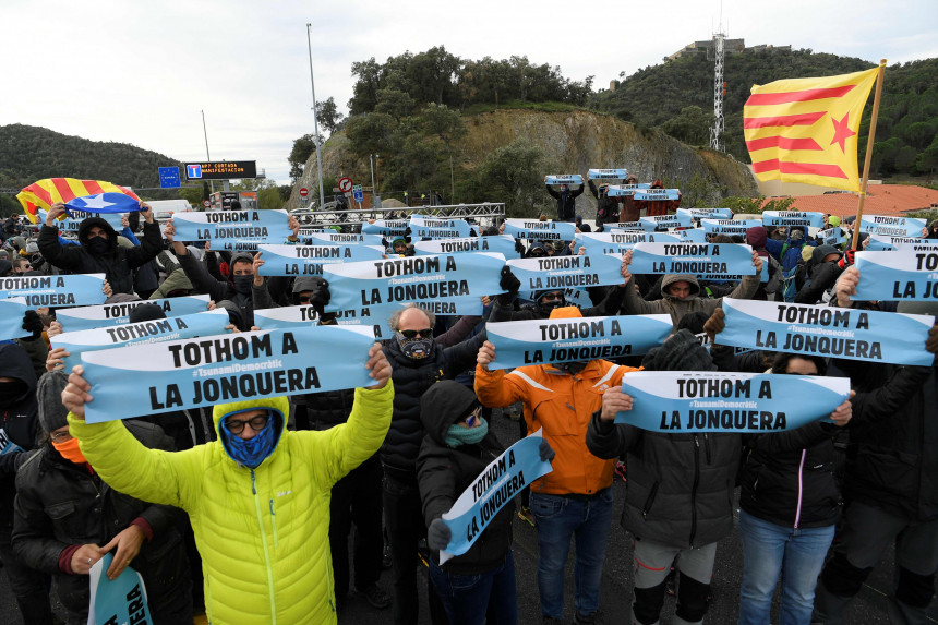 Protestētāji ar vairākiem desmitiem transporta līdzekļu nobloķējuši šoseju AP7 netālu no Žironas un izveidojuši barikādes. Protesta akcijā piedalīā aptuveni 300 cilvēku, no notikuma vietas ziņo AFP žurnālists.