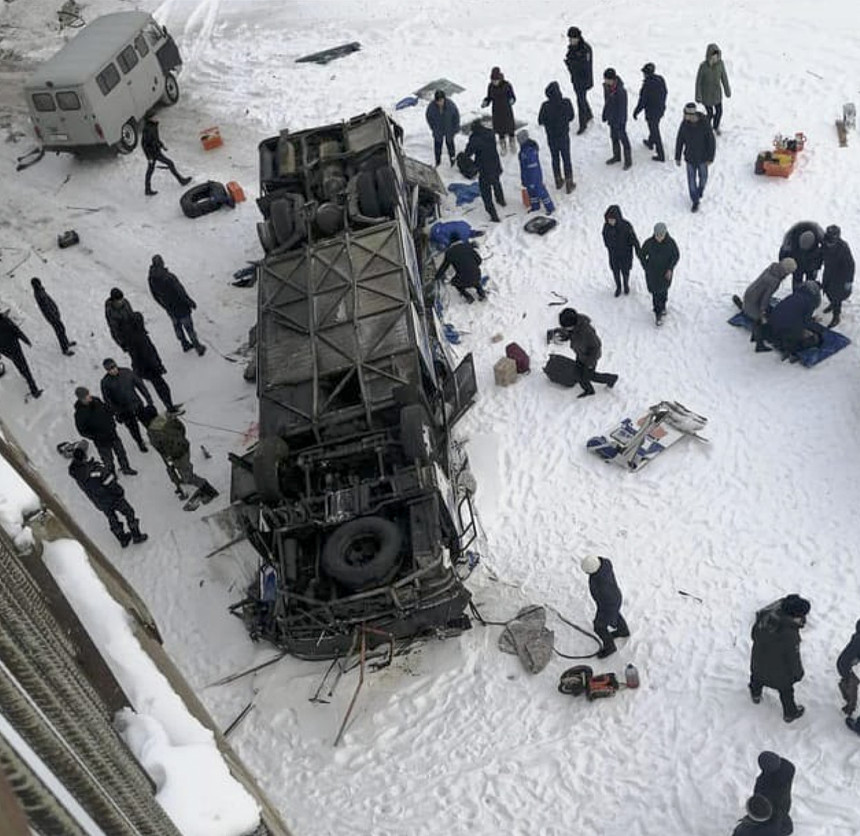 Autobusam nogāžoties no tilta aizsalušā upē, Krievijā svētdien gājuši bojā 19 cilvēki, paziņojušas amatpersonas.