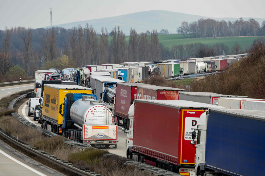 Šoseju, kas savieno Berlīni ar Polijas ziemeļrietumu pilsētu Ščecinu, uz robežas nobloķējusi 18 kilometrus gara rinda.