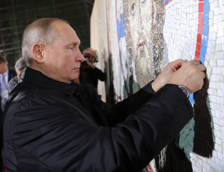 Mozaīkā līdzās Putinam redzamas arī vairākas mūsdienu Krievijas vadošās amatpersonas, arī aizsardzības ministrs Sergejs Šoigu, ārlietu ministrs Sergejs Lavrovs un Drošības padomes sekretārs Nikolajs Patruševs.