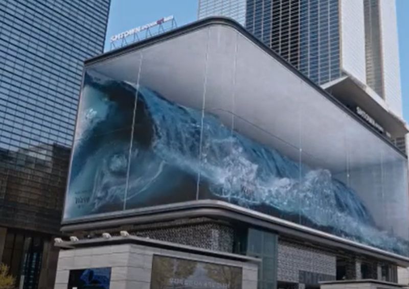 Ņemot vērā Dienvidkorejā koronavīrusa Covid-19 pandēmijas dēļ noteiktos ierobežojumus, mākslinieki, izmantojot 3D tehnoloģijas, Seulā radījuši "okeānu".