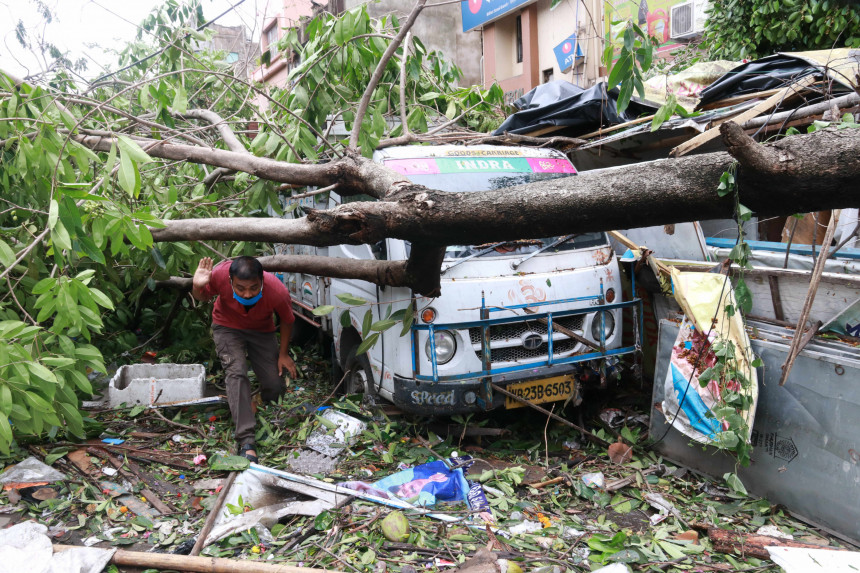 Štata galvaspilsētā Kolkatā nodarīti postījumi infrastruktūrai, sagāztas automašīnas un elektrības stabi.