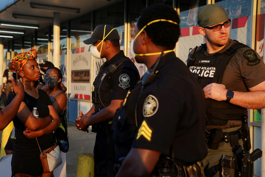 Sestdienas vakarā protestētāji bloķēja starpštatu lielceļu un aizdedzināja restorānu "Wendy's", kur tika nošauts 27 gadus vecais Rejšards Brūkss, vēsta vietējie mediji.