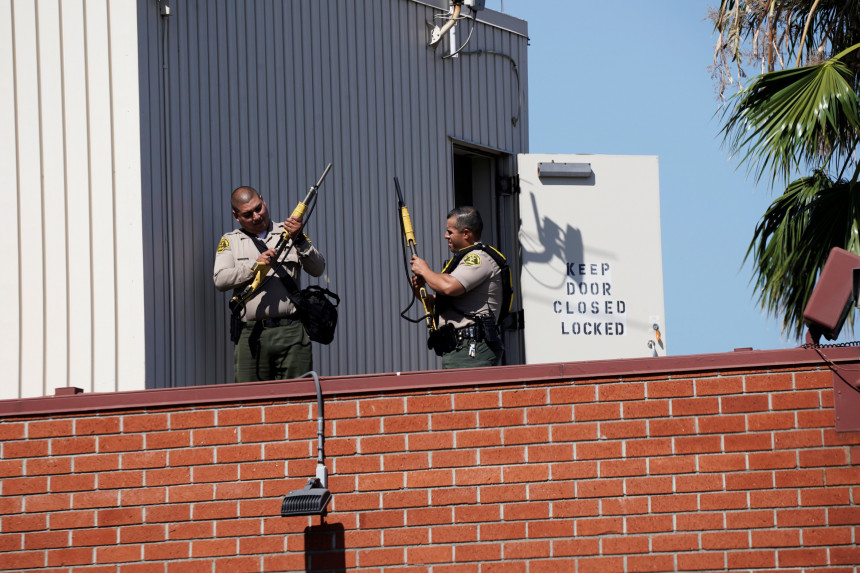 Policija ziņoja, ka vēl piecus cilvēkus pēc apšaudes sabraukušas automašīnas.