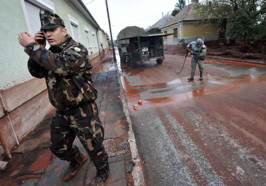 Ungārijas vides valsts ministrs Zoltans Illess paziņojis, ka vakar noplūde no rezervuāra turpinājusies un pēc viņa aplēsēm izplūduši jau gandrīz miljons kubikmetru toksisko dubļu, kas piesārņojuši vairāk nekā 40 kvadrātkilometru lielu platību. Lai dubļus tālāk nenestu Markalas upes straume (tad tie varētu nokļūt līdz pat Donavai), upē sabērts simtiem tonnu ģipša, ziņo AP.
