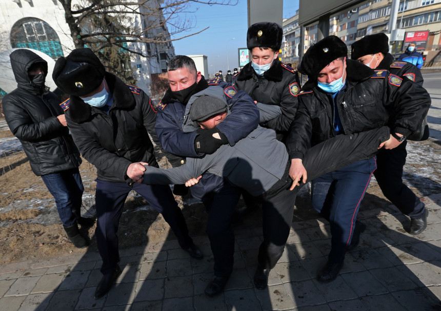 Ziņu aģentūra "Interfax" vēstīja, ka protestētāji aizturēti arī galvaspilsētā Nursultanā.