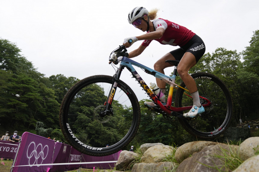 Šveices kalnu riteņbraucējas otrdien aizņēma visu goda pjedestālu Tokijas olimpisko spēļu sacensībās krosā, uzvaras laurus plūcot Jolandai Nefai.