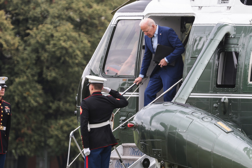 Ierodoties no Kempdeividas rezidences, Baidens neatbildēja uz to žurnālistu jautājumiem, kas sagaidīja viņa helikopteru.