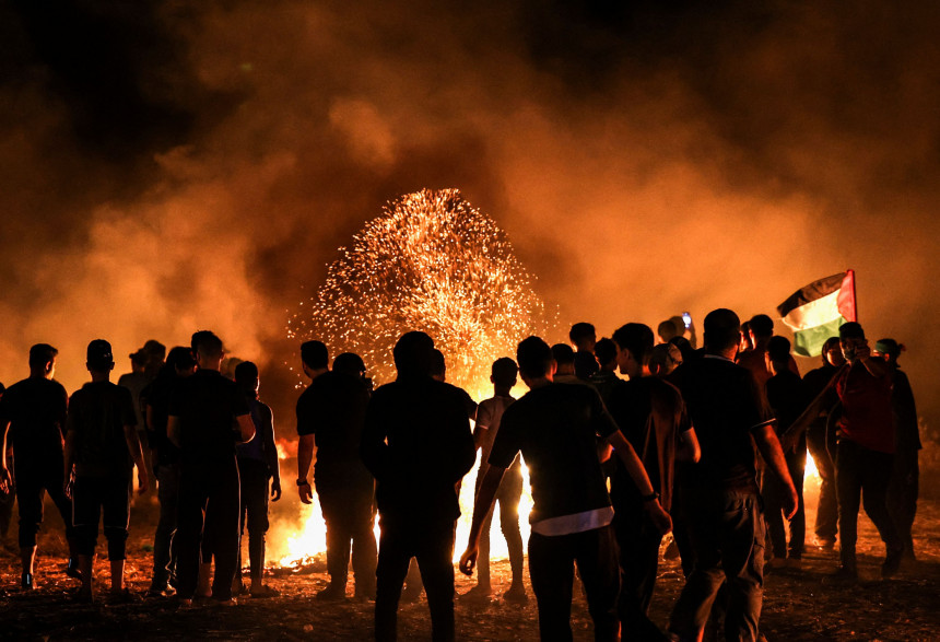 Sestdien protestu gaitā līdzās robežai Izraēlas armija protestētājos raidīja asaru gāzes šāviņus un trokšņa granātas, bet palestīnieši dedzināja riepas, no notikumu vietas vēstīja ziņu aģentūras AFP korespondents.