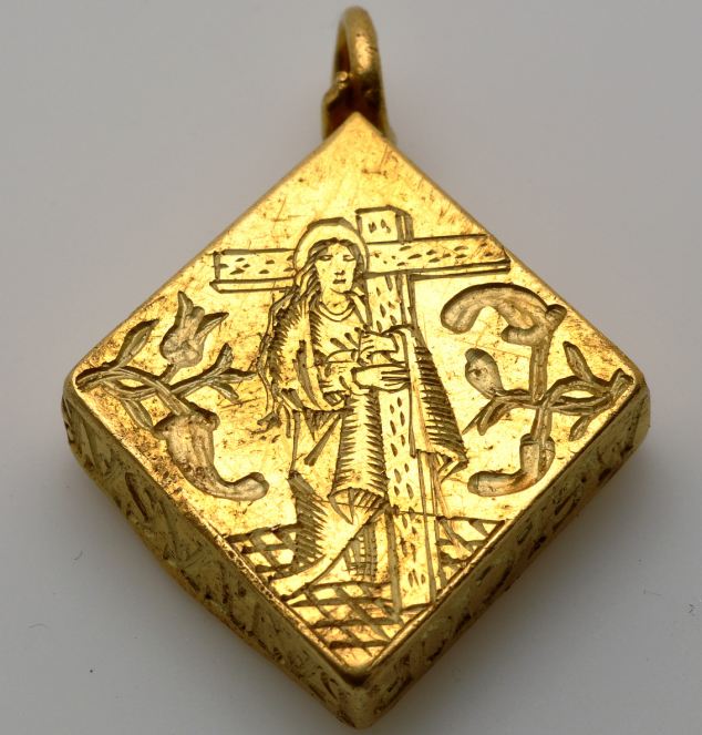 Britu muzeja pārstāvji norāda, ka kulons sver vienu trešdaļu unces un satur 73% zelta. Attēls, kas iegravēts tajā, visticamāk, ir Svētā Marija. Tāpat tas dekorēts ar piecām Kristus brūcēm.