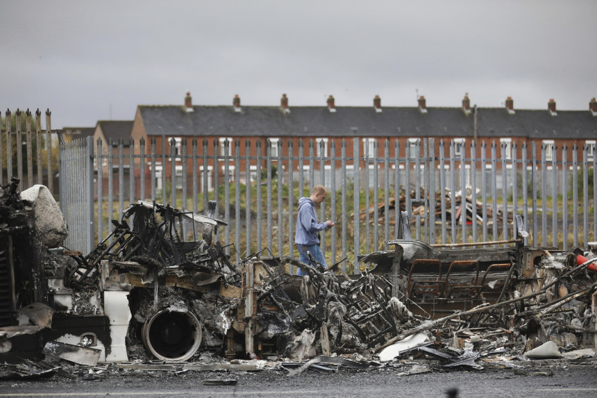 Pagājušajā pirmdienā autobuss tika nolaupīts un aizdedzināts Ņūtaunardsā. Tas acīmredzot bija protests pret tā dēvēto Ziemeļīrijas protokolu.