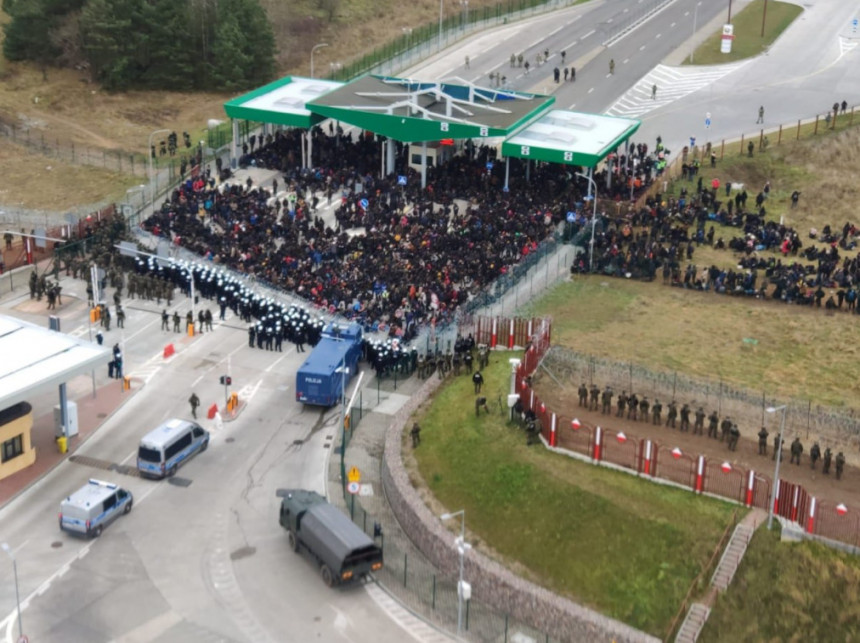 "Nelegālie imigranti kopš rīta pulcējas pie šī robežas šķērsošanas punkta," un "tiek gatavots mēģinājums ar spēku izlauzties cauri robežai", pavēstīja Polijas robežsardze.