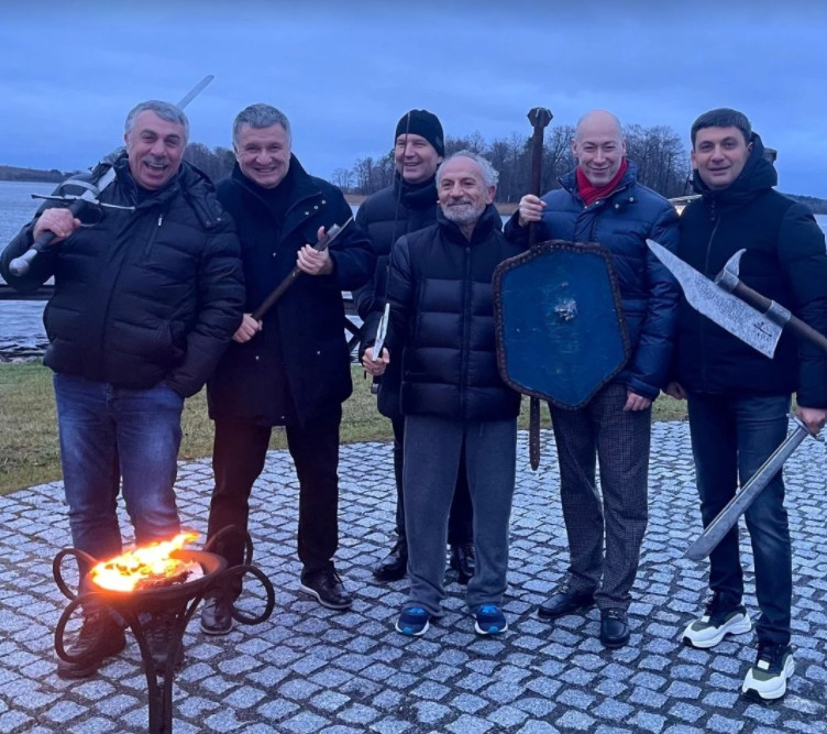 Bijušais Ukrainas iekšlietu ministrs Arsens Avakovs 22.novembrī sociālajos tīklos bija publiskojis Lietuvā pie Traķu pils uzņemtu fotogrāfiju, kurā viņš redzams kopā ar pazīstamo Lietuvā dzimušo Ukrainas televīzijas pārraižu vadītāju Saviku Šusteru, žurnālistu Dmitriju Gordonu, bijušo premjeru Volodimiru Groismanu, Ukrainā populāro ārstu un pārraižu vadītāju Jevgeņiju Komarovski un televīzijas producentu Pāvelu Jeļizarovu. Visi pozējuši fotogrāfijai, turot viduslaiku ieročus - zobenus, āvas, kara cirvjus un vairogus.