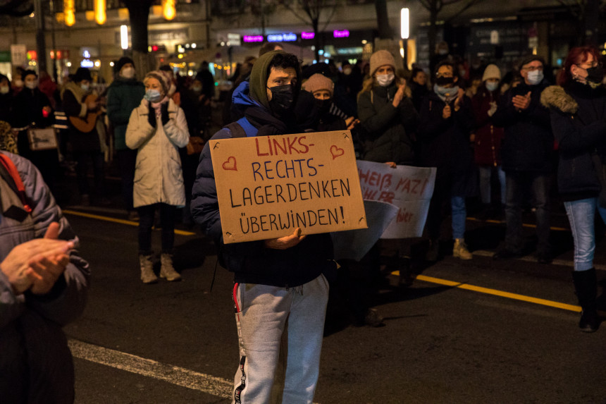 Daudzi protestētāji pauda sašutumu arī par plānotu obligātas vakcinācijas likumu, kuru atbalsta jaunā Vācijas koalīcijas valdība.