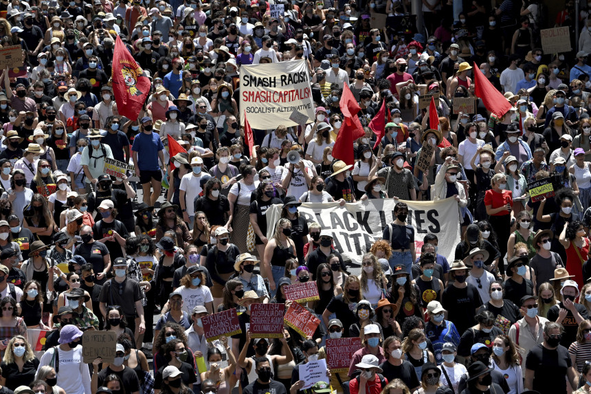 Austrālijā trešdien valsts svētku brīvdienā tūkstošiem cilvēku sapulcējušies uz protestiem pret aborigēnu apspiešanu.