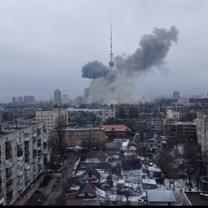BREAKING: Kiev TV tower struck by russian precision strike pic.twitter.com/qhIWA6u8F8