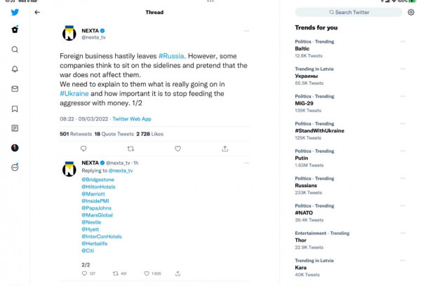 Tabakas gigants "Philip Morris International", kas 2020. gadā bija Krievijā vadošais ārvalstu uzņēmums pēc ieņēmumiem, ir apturējis darbību Ukrainā, bet ne Krievijā.
