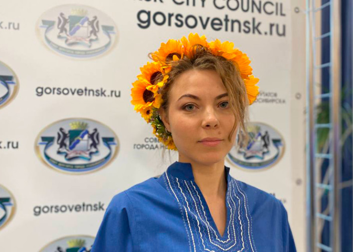Krievijā Novosibirskas domes putinistu sašutumu trešdien izraisījusi neatkarīgā deputāte Helga Pirogova, kas uz domes plenārsēdi bija ieradusies ar Ukrainas nacionālo ziedu saulespuķu vainagu galvā, vēsta tīmekļa izdevums "Taiga Info".