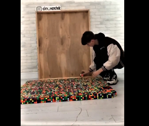 Ukrainas rekordists Kubika Rubika salikšanā Oleksandrs Ivančaks no Kubika Rubika kubiem izveidojis Volodimira Zeļenska portretu.