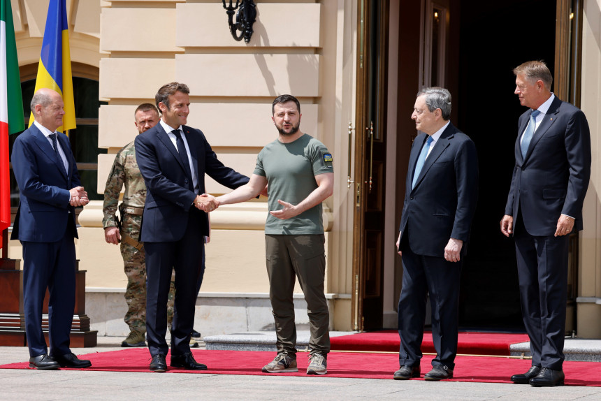 Lai apliecinātu atbalstu Ukrainai, ceturtdien vizītē ieradušies Vācijas kanclers Olafs Šolcs, Francijas prezidents Emanuels Makrons, Itālijas premjerministrs Mario Dragi un Rumānijas prezidents Klauss Johanniss.