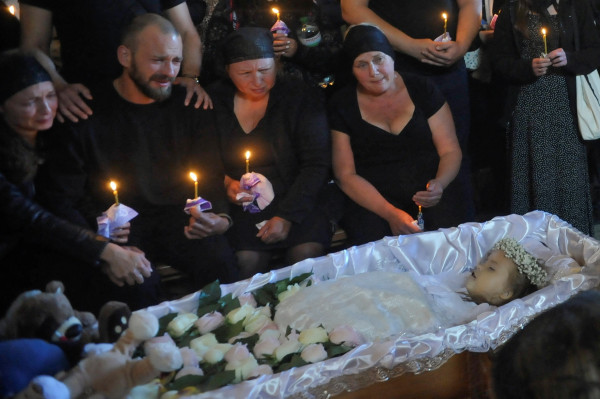 Ukrainas pilsētā Vinnicā svētdien notika bēres, atvadoties no četrus gadus vecās meitenītes Lizas.