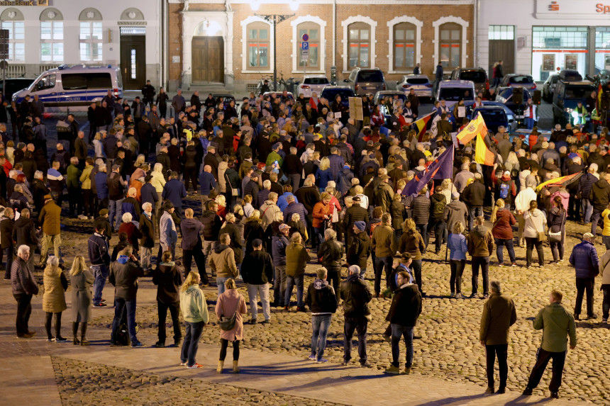 Magdeburgā, aptuveni 150 kilometrus uz rietumiem no Berlīnes, demonstrācijā, ko organizēja labējā eiroskeptiķu partija "Alternatīva Vācijai" (AfD), piedalījās aptuveni 1100 cilvēki.
