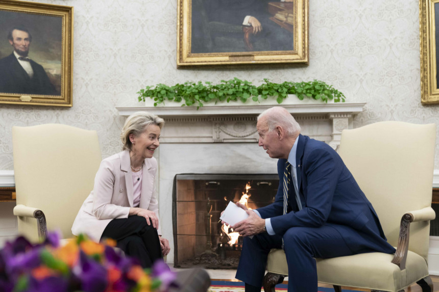 ASV un ES sola vēl vairāk ierobežot Krievijas ieņēmumus, vienlaikus nodrošinot nepārtrauktu enerģijas piegādi jaunajiem tirgiem un jaunattīstības valstīm, teikts Baidena un Leienas paziņojumā.