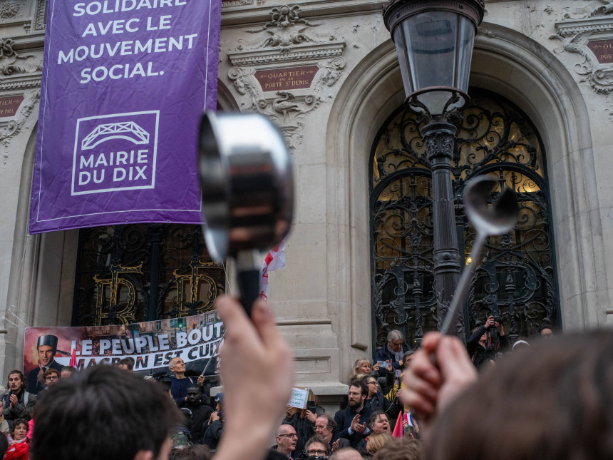 Kamēr prezidents turpināja savu runu, pie pilsētu mērijām visā Francijā pulcējās pilsoņi ar pannām, kuras skandinot centās skaļumā pārspēt Makrona vārdus.