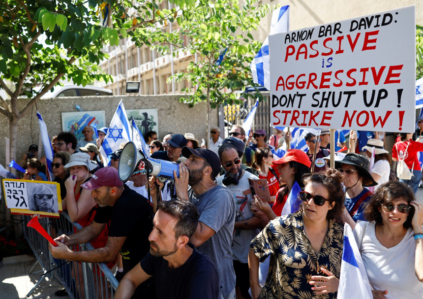 Vēl citi demonstranti pulcējās pie Izraēlas lielākās arodbiedrības "Histadrut" ēkas, pieprasot, lai organizācija izsludina ģenerālstreiku. Šis solis varētu paralizēt Izraēlas ekonomiku.