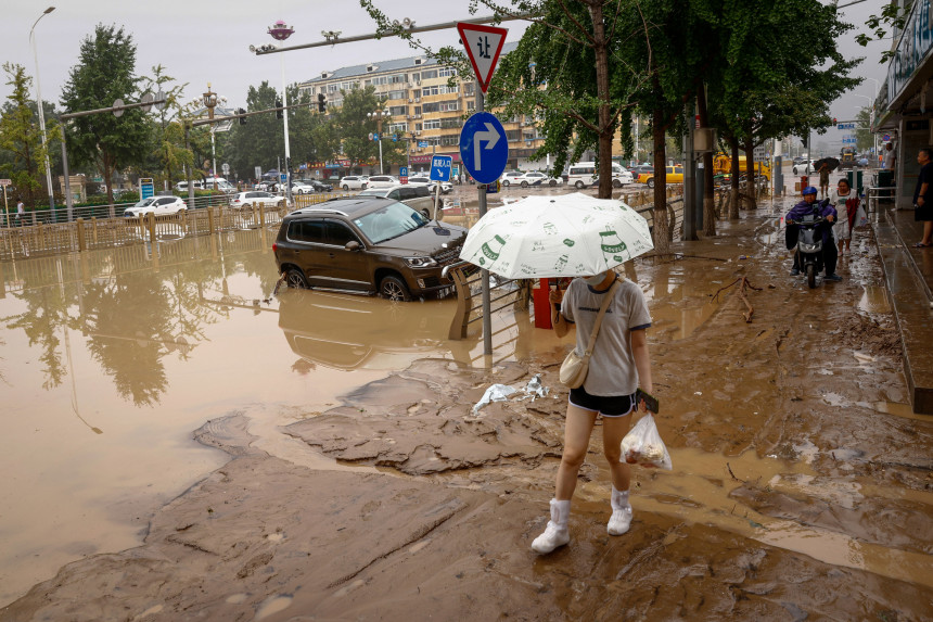 Vētra "Doksuri" plosās Ķīnas ziemeļos kopš piektdienas, un Pekinā no sestdienas vakara līdz pirmdienas pusdienlaikam 40 stundu laikā nolija gandrīz tikpat daudz nokrišņu, cik parasti vidēji jūlijā.