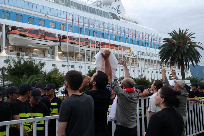 Gruzīnu aktīvisti sarīkoja "karstu" uzņemšanu krievu tūristiem kūrortpilsētā Batumi, protestējot pie ostas un ar olām apmētājot autobusus, vēsta dialog.ua.