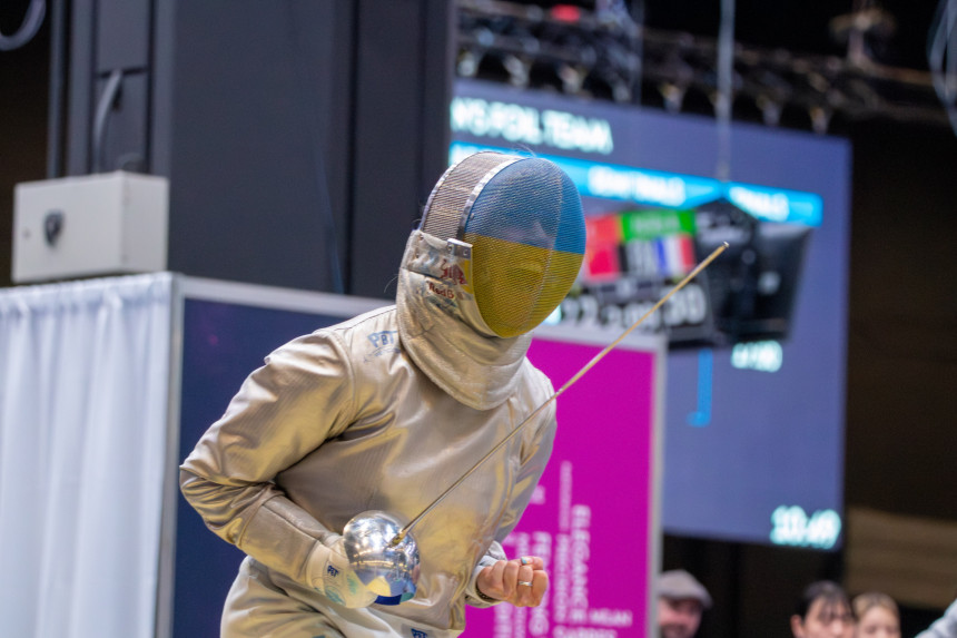Jau ziņots, ka četrkārtējā pasaules čempione Harlana pasaules meistarsacīkstēs sacensībās ar zobenu pirmajā kārtā pārspēja Krievijas paukotāju Annu Smirnovu, kura pasaules čempionātā sacentās kā neitrālā sportiste.