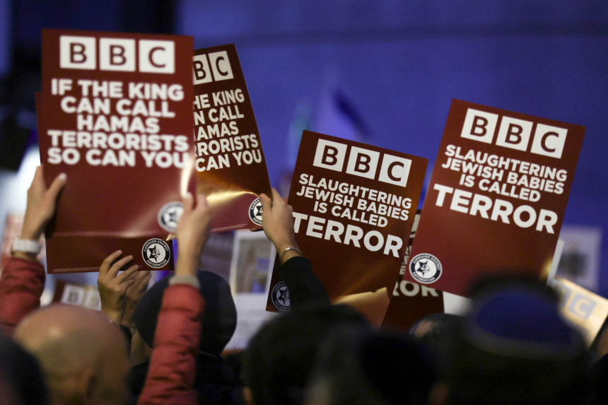 Savukārt palestīniešu atbalstītāji Londonā apsūdzēja raidsabiedrību, ka tā attaisno "Izraēlas kara noziegumus" un aplēja raidsabiedrības ēku ar sarkanu krāsu.
