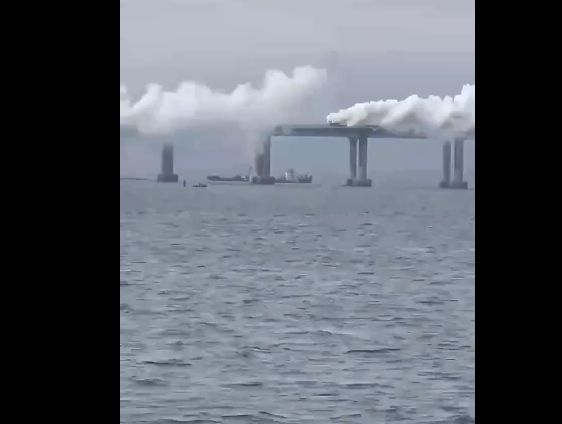 Vietnē "X" pirms dažām minūtēm ievietots video, kur redzams, ka virs Krimas tilta redzami dūmu mutuļi.