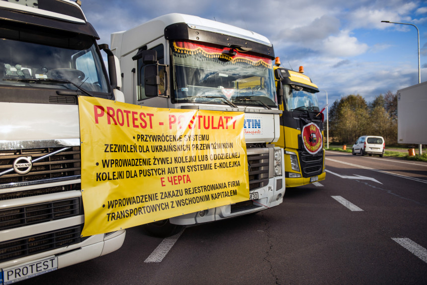 Desmitiem poļu pārvadātāju vienlaikus bloķējušas vairākas robežšķērsošanas vietas. Tiek ļauts robežu šķērsot vieglajām automašīnām, bet neļauj kravas automašīnām iekļūt Polijā. Stundā ir atļauta tikai viena kravas automašīnas iebraukšana.