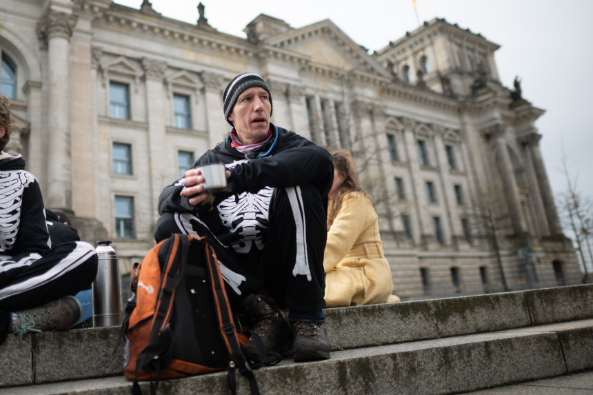 Pirms 12 dienām viņam pievienojās vēl viens aktīvists. Viņi abi dzīvo teltī vienā no Berlīnes parkiem valdības ēku rajonā.