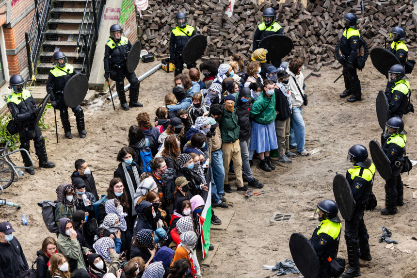 Nīderlandes policija trešdien Amsterdamas universitātē izjaukusi palestīniešu atbalstītāju demonstrāciju.