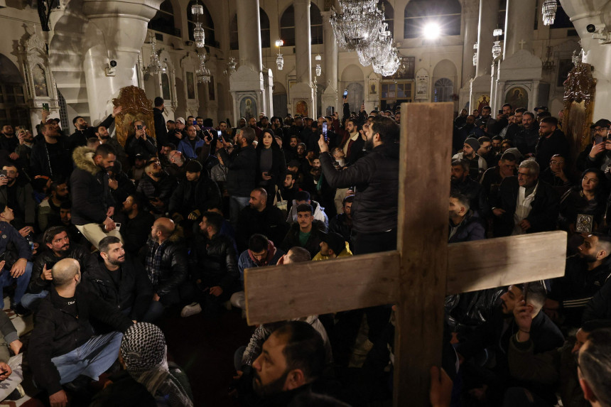 "Mēs pieprasām tiesības kristiešiem," skandēja demonstranti, kas devās uz pareizticīgo patriarha rezidenci, kas atrodas Damaskas Austrumu jeb Saules vārtu apkaimē.