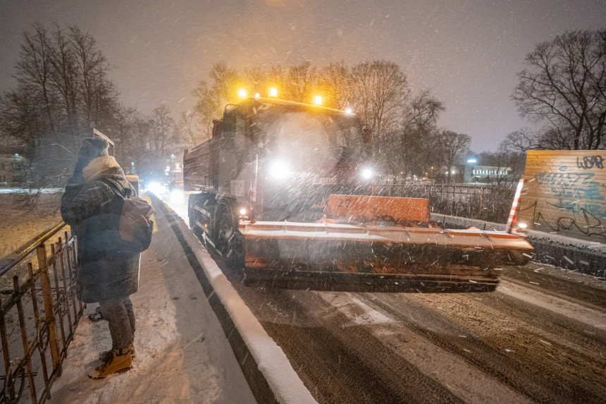 Strādā ceļu tīrīšanas tehnika, un vispirms tiek tīrīti galvenie ceļi.