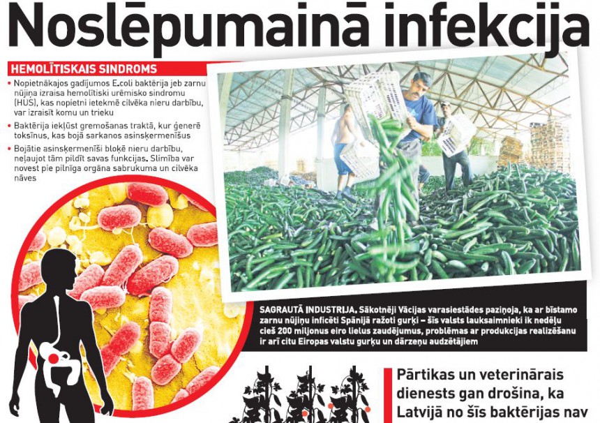 «Es ierosināšu kompensāciju 150 miljonu apmērā,» pirms vakar Briselē notikušās ES lauksaimniecības ministru tikšanās sacījis ES lauksaimniecības komisārs Dačians Kjoloss, kurš paudis pārliecību, ka ministri viņa priekšlikumu atbalstīs. Sarunā ar AFP komisārs piebildis, ka precīza kompensāciju summa vēl varētu tikt pārskatīta atkarībā no dažādu valstu ražotāju aplēsēm par nodarītajiem zaudējumiem. AP gan uzsver, ka piedāvātā kompensācija segs mazāk nekā trešdaļu zaudējumu, kas nodarīti Eiropas dārzeņu audzētājiem. Pēc tam, kad Vācijas varasiestādes maija nogalē paziņoja, ka infekcijā vainojami Spānijā audzēti gurķi, tikai šīs valsts lauksaimnieki vien ik nedēļas cieš 200 miljonus eiro lielus zaudējumus. Daudzviet Eiropā, it sevišķi Vācijā, ievērojami samazinājies pieprasījums arī pēc citās valstīs audzētiem svaigiem dārzeņiem, turklāt vairākas valstis, kā, piemēram, Krievija un Katara, atteikušās importēt jebkurā ES valstī audzētus dārzeņus. Pirms sanāksmes D. Kjoloss aicinājis Vācijas varasiestādes pēc iespējas ātrāk noteikt infekcijas cēloni un neizplatīt nepārbaudītu informāciju.
