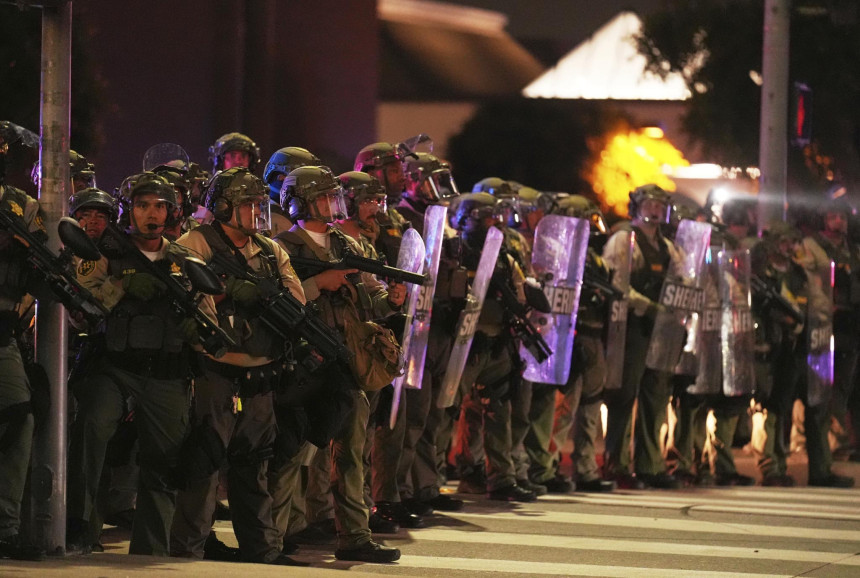 Kalifornijas štata gubernators un LA pilsētas mēre mierina cilvēkus un mierīgos protestētājus un aicina viņus nepakļauties Trampa provokācijām, bet sola tiesāt un saukt pie atbildības visus, kas demolē un laupa uz šī rēķina. Šonakt tur ir komandantstunda noteikta."